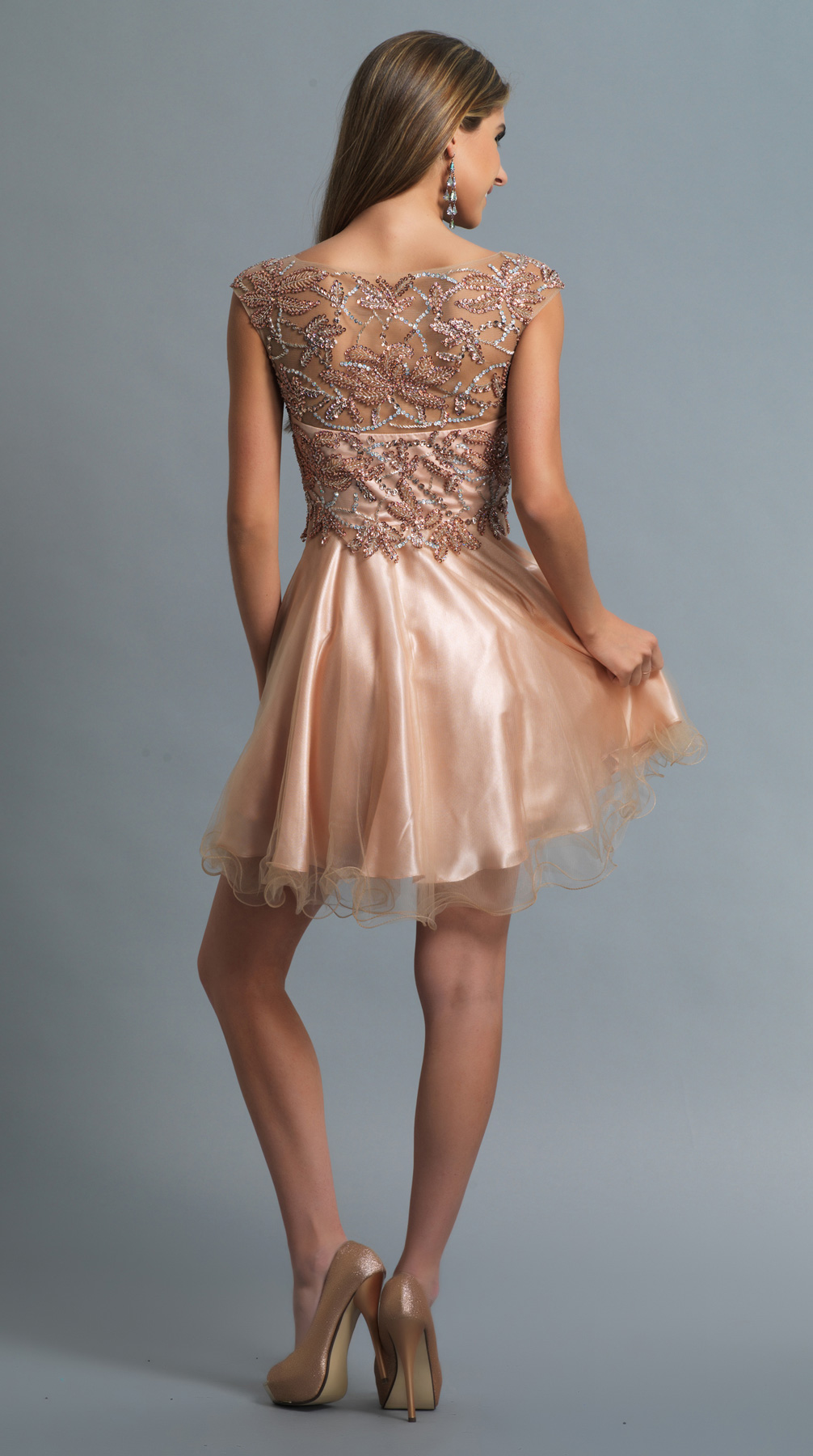 Dave and Johnny Prom Dress 10077. Tulle flared bottom and embellished bodice dress with illusion boat neckline and cap sleeves.As advertised from the manufacturer: www.Daveandjohnny.com.