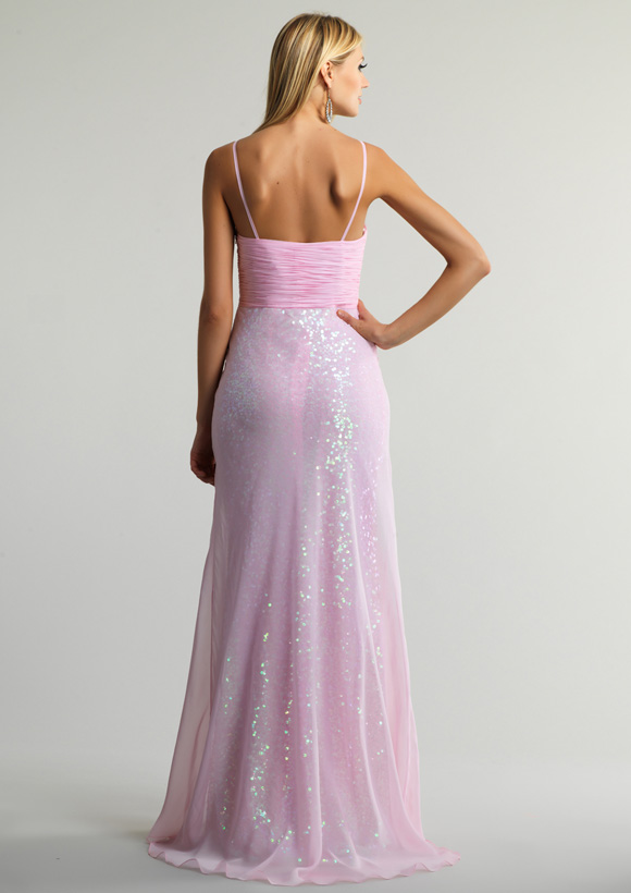 Dave and Johnny Prom Dress 10184. Long chiffon dress with sequin underlay and beaded bust embellishment.