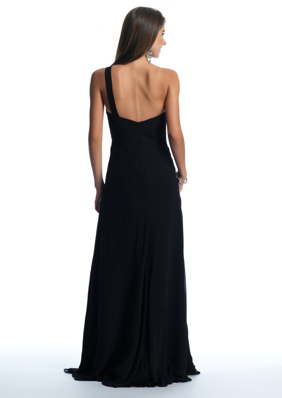 Dave and Johnny Prom Dress 10220. Long chiffon dress with beaded neckline embellishment and one shoulder.Color Samples