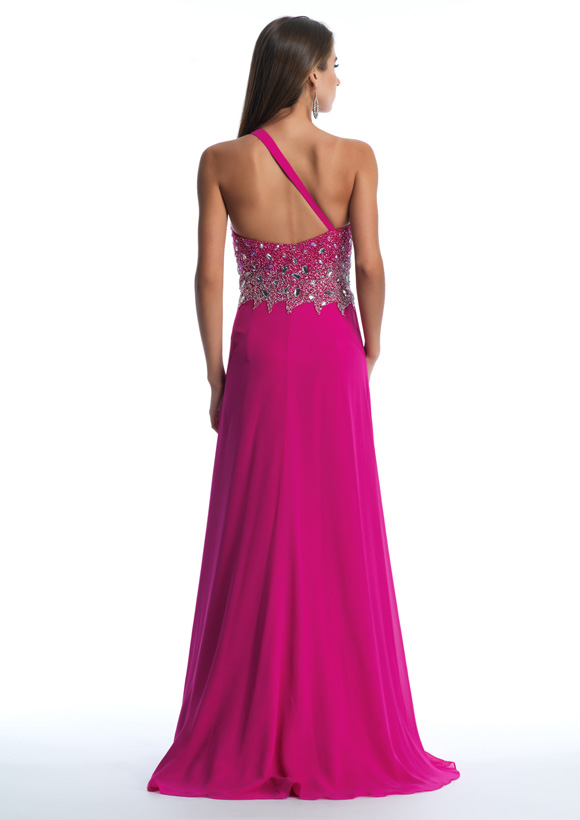 Dave and Johnny Prom Dress 10313. Long chiffon dress with beaded top and one shoulder.
