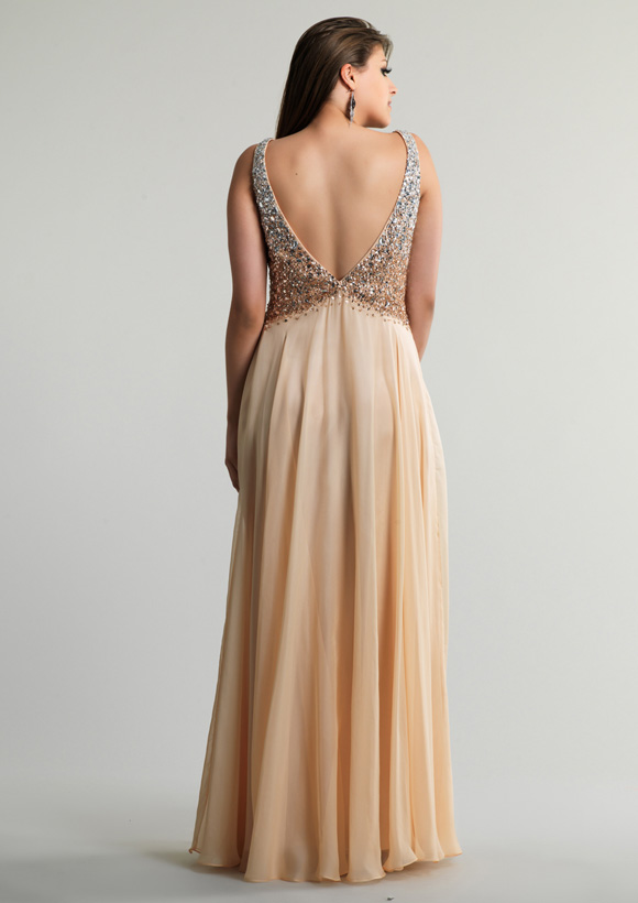 Dave and Johnny Prom Dress 10325. Long chiffon dress with beaded v-neck top.