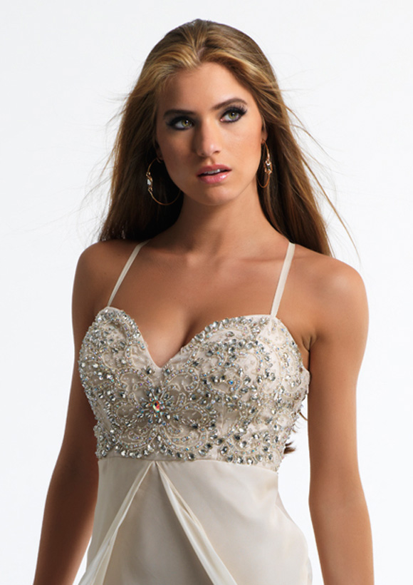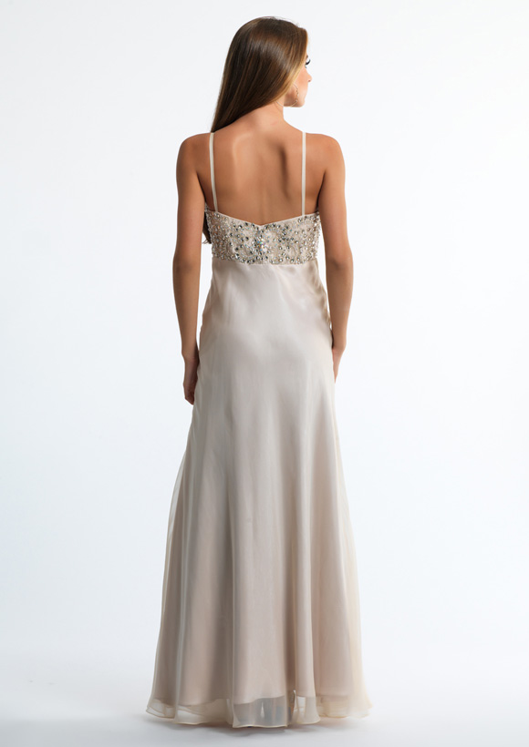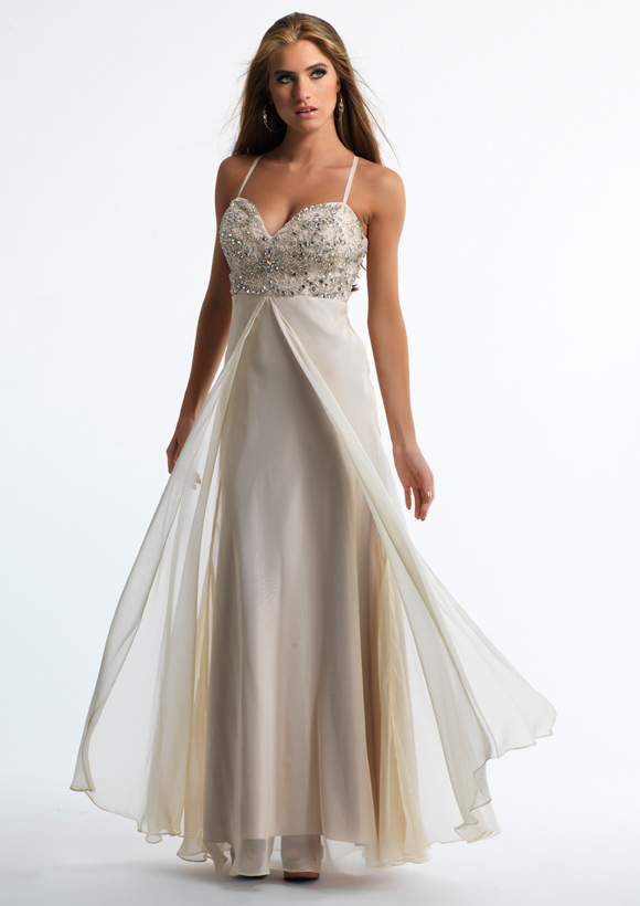 Dave and Johnny Prom Dress 10495. Long chiffon dress with beaded sweetheart top.