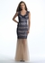 Dave and Johnny Prom Dress 1093. Beaded lace crochet bodice with illusion neckline has a flare tulle bottom.