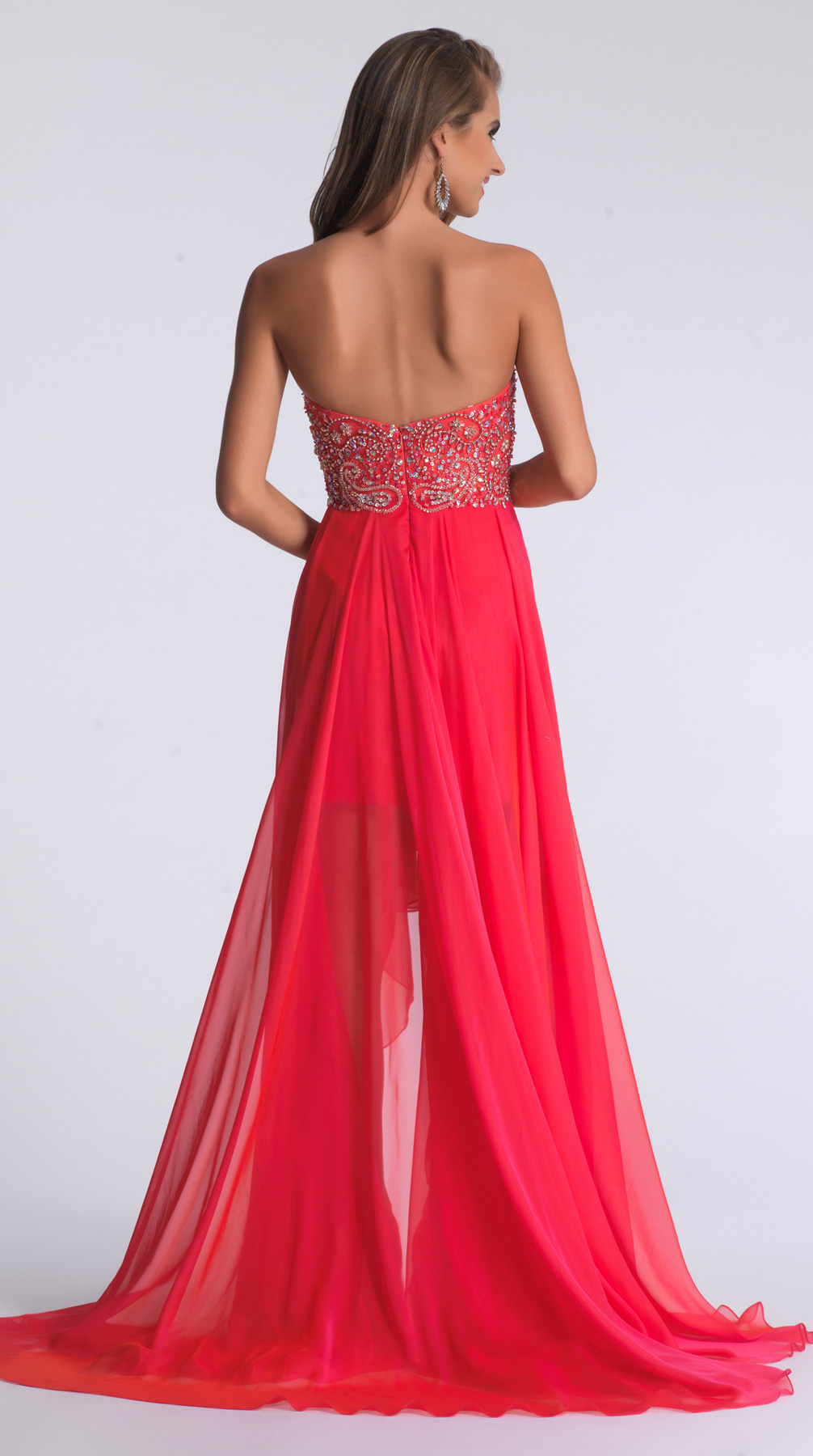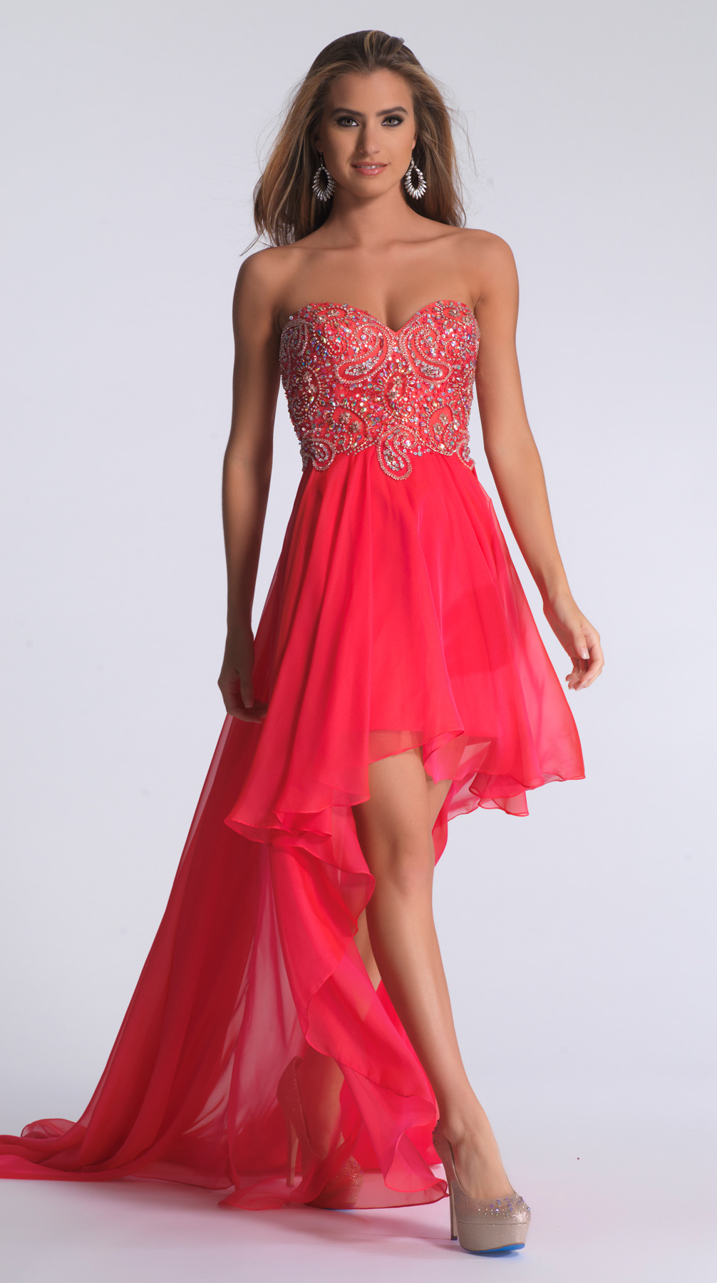 Dave and Johnny Prom Dress 1147. High-low chiffon gown with beaded bodice.