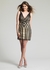 Dave and Johnny Prom Dress 1468. This cocktail dress showcases a V-neckline with wide V-back creates a playful look. The nude lining is overlaid with sheer fabric adorned with contrasting beads in a symmetrical pattern.As advertised from the manufacturer: www.Daveandjohnny.com.