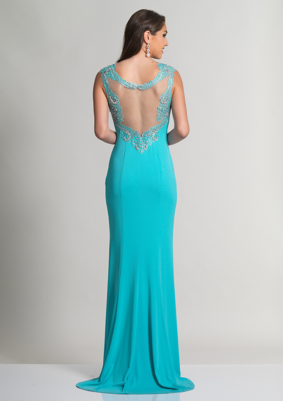 Dave and Johnny Prom Dress 2690. A sophisticated long dress featuring a sheer illusion neckline and plunging sweetheart bodice, complimented by a sexy stretch jersey silhouette.As advertised from the manufacturer: www.Daveandjohnny.com.