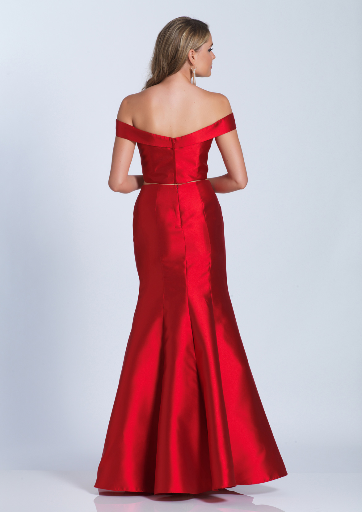 Dave and Johnny Prom Dress 3349. An off the shoulder 2 piece trumpet prom gown.