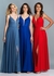 Dave and Johnny Prom Dress 3564. A plunging sheer neck prom gown with spaghetti straps, a high skirt slit, a choker collar, and an open strappy back.Color Samples