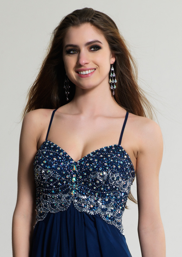 Dave and Johnny Dress 553. Long beaded chiffon dress with beaded sweetheart top.
