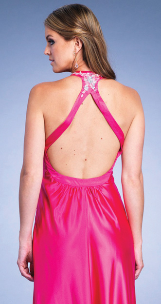 Dave and Johnny style 6496. Satin charmeuse dress with beading on the empire waist and back. The bust of this dress is shirred and sweethearted.As advertised from the manufacturer: www.Daveandjohnny.com.