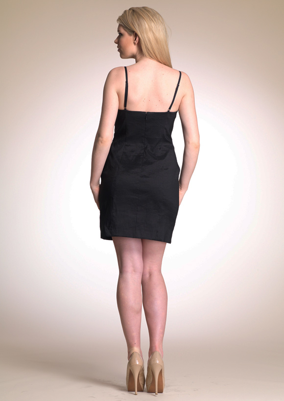 Dave and Johnny style 6775. Short stretch taffeta dress with spaghetti straps and a sweetheart neckline. This dress has a starburst detail that is sequined.As advertised from the manufacturer: www.Daveandjohnny.com.