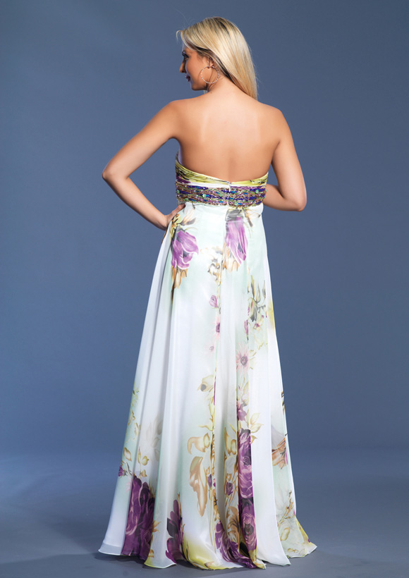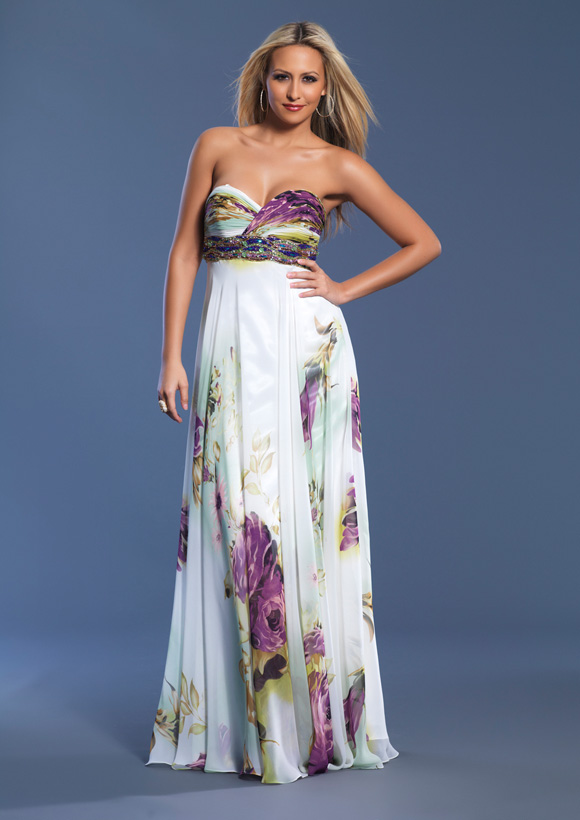 Dave and Johnny style 6998. Strapless dress with a shirred sweetheart neckline and a beaded empire waistline. This dress has a back zipper.As advertised from the manufacturer: www.Daveandjohnny.com.
