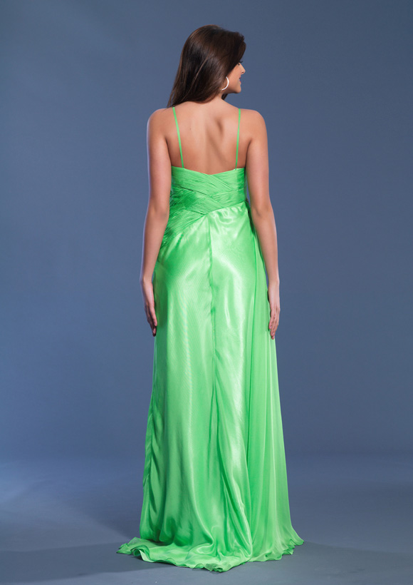 Dave and Johnny style 7067. Chiffon dress with a sweetheart neckline and a shirred beaded bodice. This dress has a side zipper.As advertised from the manufacturer: www.Daveandjohnny.com.