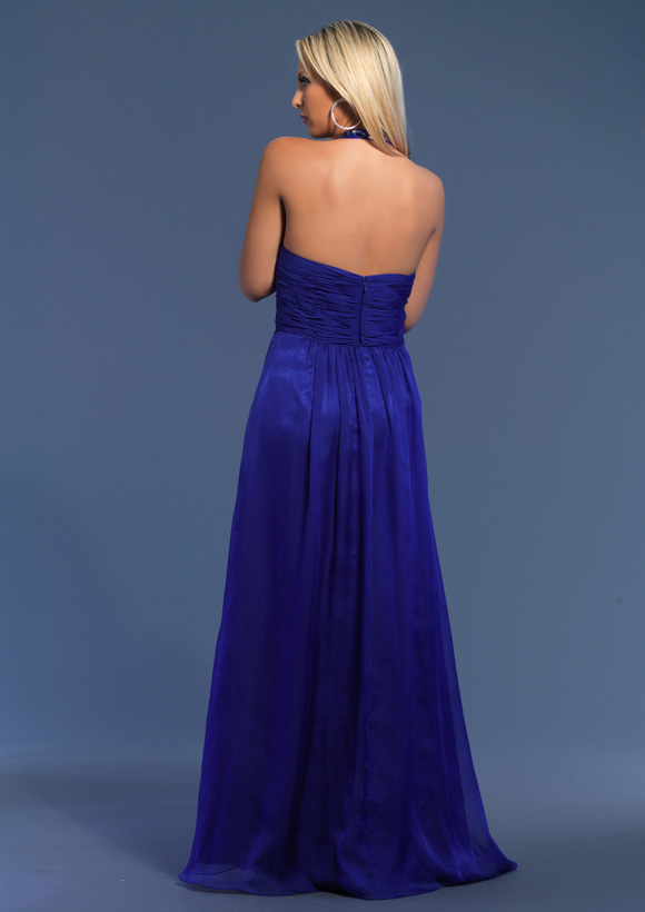 Dave and Johnny style 7379. Beaded halter chiffon dress with a rouched bust. This dress has a flowy skirt.Color Samples