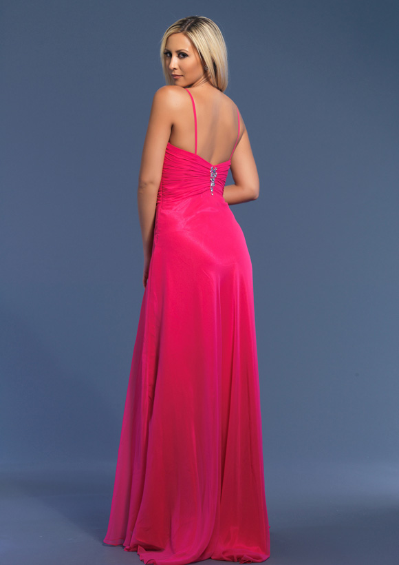 Dave and Johnny style 7538. Chiffon dress with a scoop neck beaded and jeweled top. This dress has a side zipper.