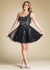 Dave and Johnny Prom Dress 7762. Black beaded tulle fuller skirt with silver sequins one shoulder short length.