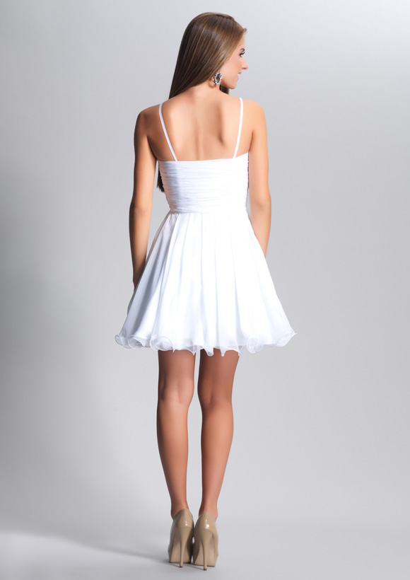 Dave and Johnny Prom Dress 8169. Short White tulle skirt with beaded top and shirred waist band.