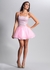 Dave and Johnny Prom Dress 8299. Short Pink tulle skirt with beaded top and tie up back.