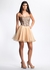 Dave and Johnny Prom Dress 8680. Animal Print corset top with Nude tulle skirt and tie up back.
