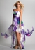 Dave and Johnny Prom Dress 8688. Print chiffon high-low with no beading and shirred top.