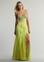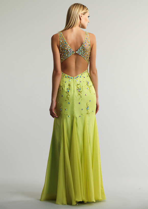 Dave and Johnny Prom Dress 9544. Long chiffon dress with beaded v-neck bust and cut out back.Color Samples