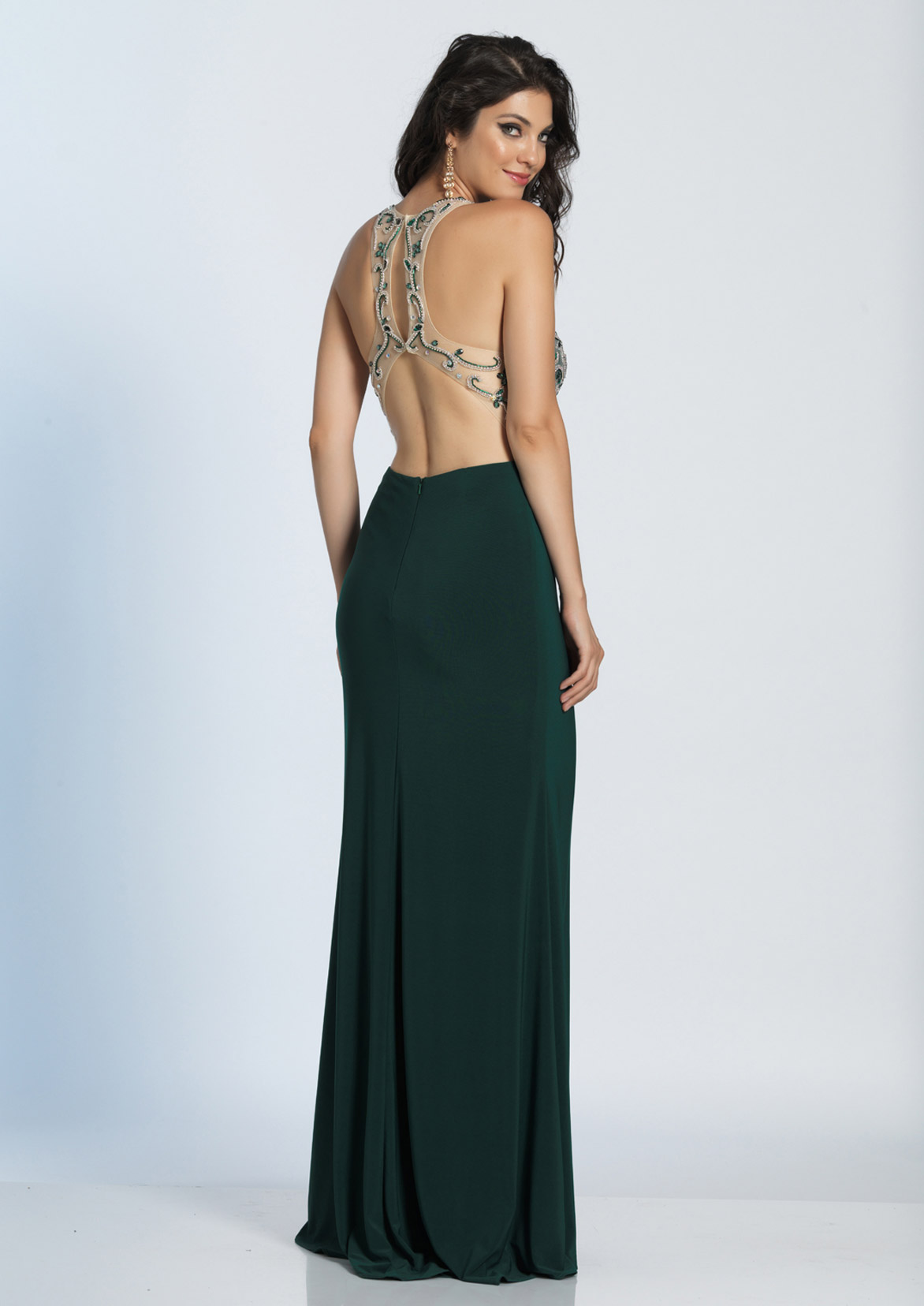 Dave and Johnny Prom Dress A4690. An illusion neckline is bedecked with glimmering accents. The beaded bodice swirls in a queenly motif with a sweetheart appeal to an embellished waistband. The flattering skirt fits your hips and flares to a mermaid design with shirring and a complete hemline.Fabric: Beaded Top/Jersey