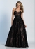 Dave and Johnny Prom Dress A5006. Thin halter straps embrace your neck and delve into a sweetheart neckline. The gleaming bodice is formed in a corset style with illusion fabric and lining to a glossy sewn-in waistband. The ballgown skirt shines with embroidered layers and detailed shirring to the floor.Fabric: Embroidery Tulle