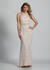 Dave and Johnny Prom Dress A5743. This fitted dress highlights a sleeveless bodice with halter neckline. The whole ensemble is crafted in lace fashioned with beads at the neckline and natural waist. The back reveals a triangular cutout with a center zipper closure at the skirt.As advertised from the manufacturer: www.Daveandjohnny.com.