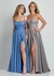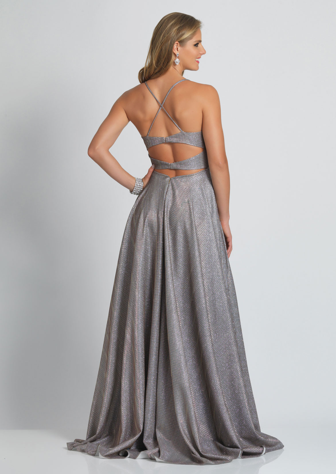 Dave and Johnny Prom Dress A6933. A low scoop neckline frames the tank-style top supported by spaghetti straps which leads to the double bandeau back. Tonal piping around the waist provides a faux wrap-styled skirt. The a-line silhouette showcases fabulous pleats that cascades to the floor.Color Samples