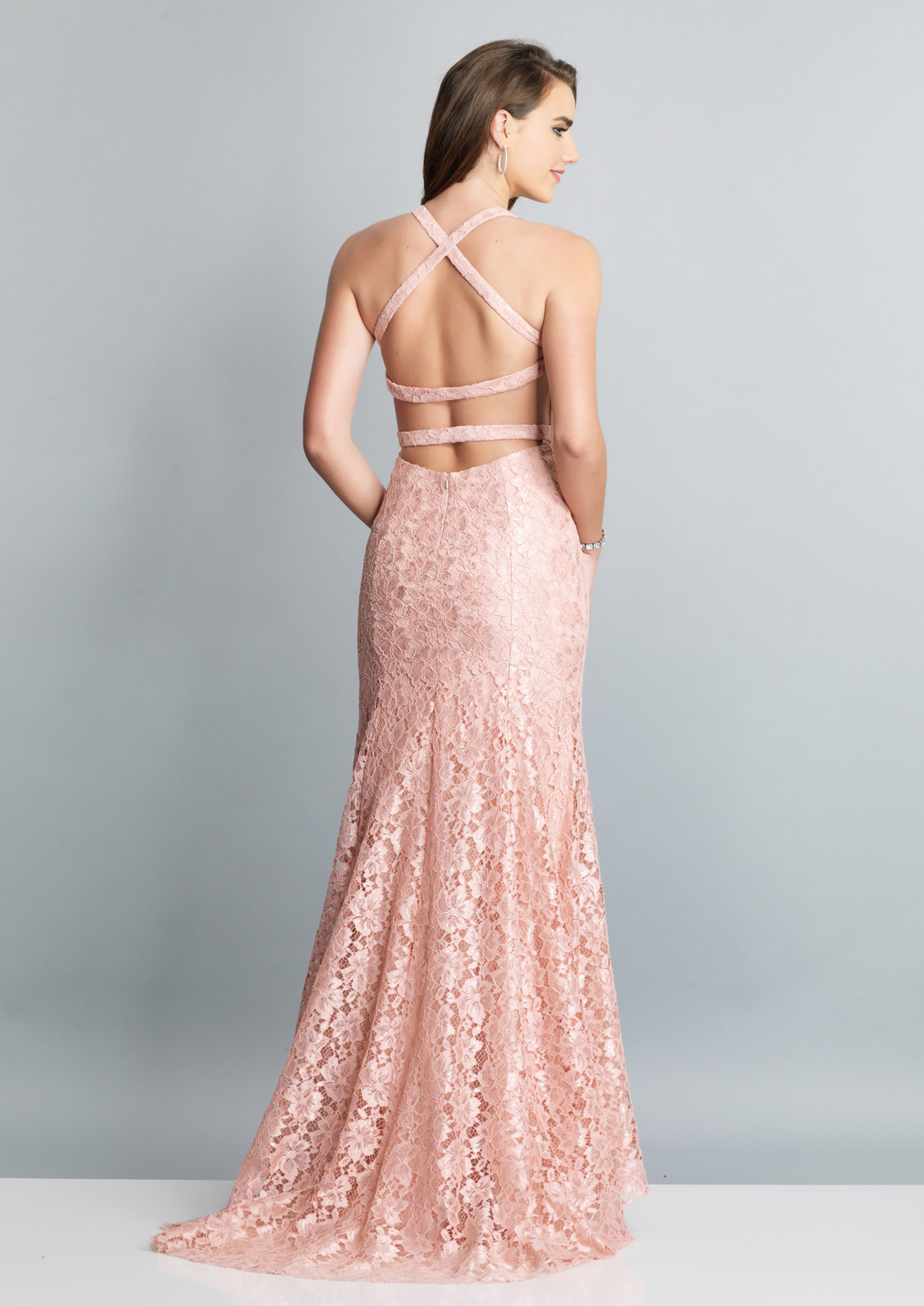 Dave and Johnny Prom Dress A7909. A halter neck evening dress with strappy back.